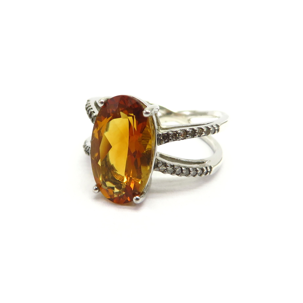 Long Oval Citrine Ring set in Sterling Silver