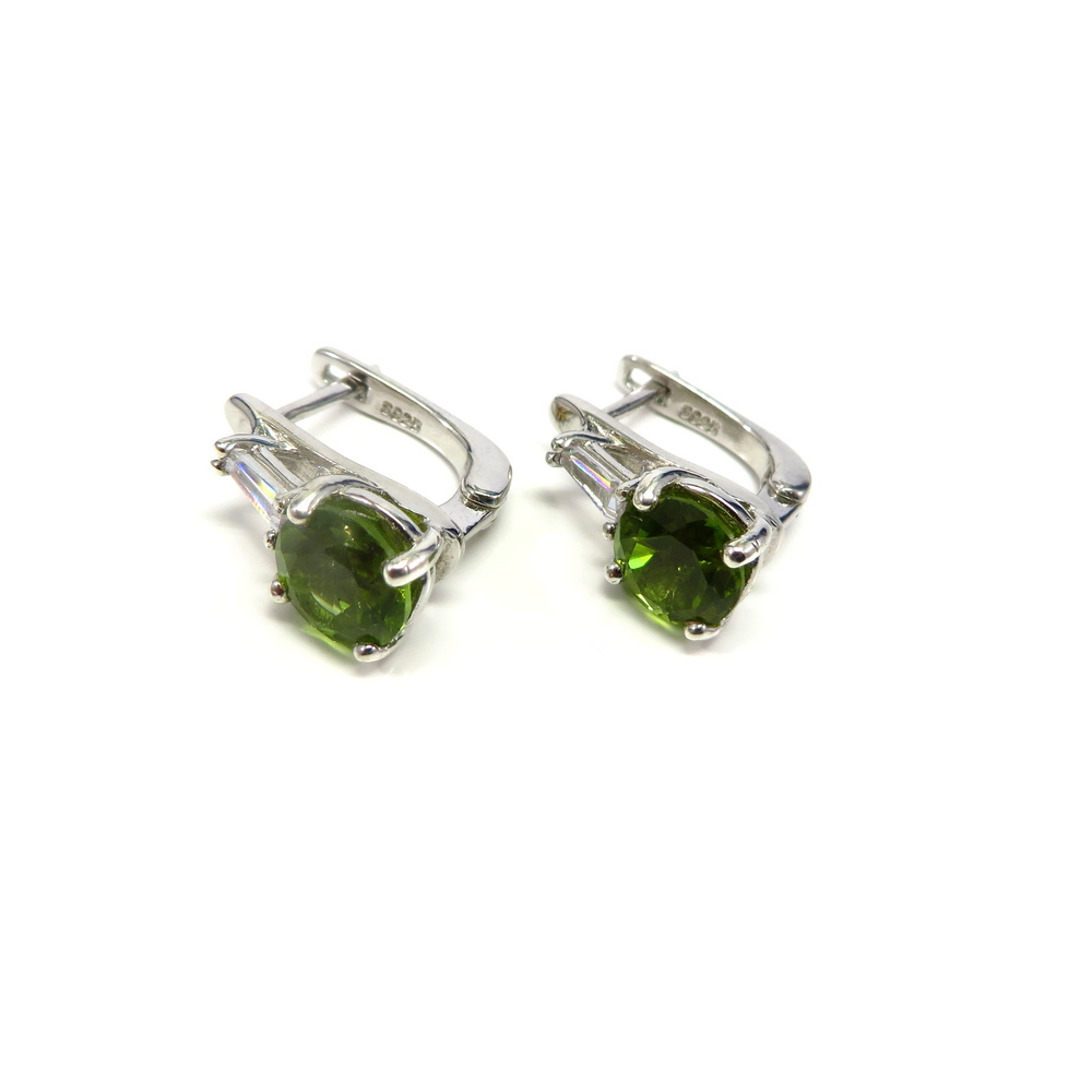 Round Peridot and Cubic Zirconia Earrings in Rhodium-Plated Sterling Silver