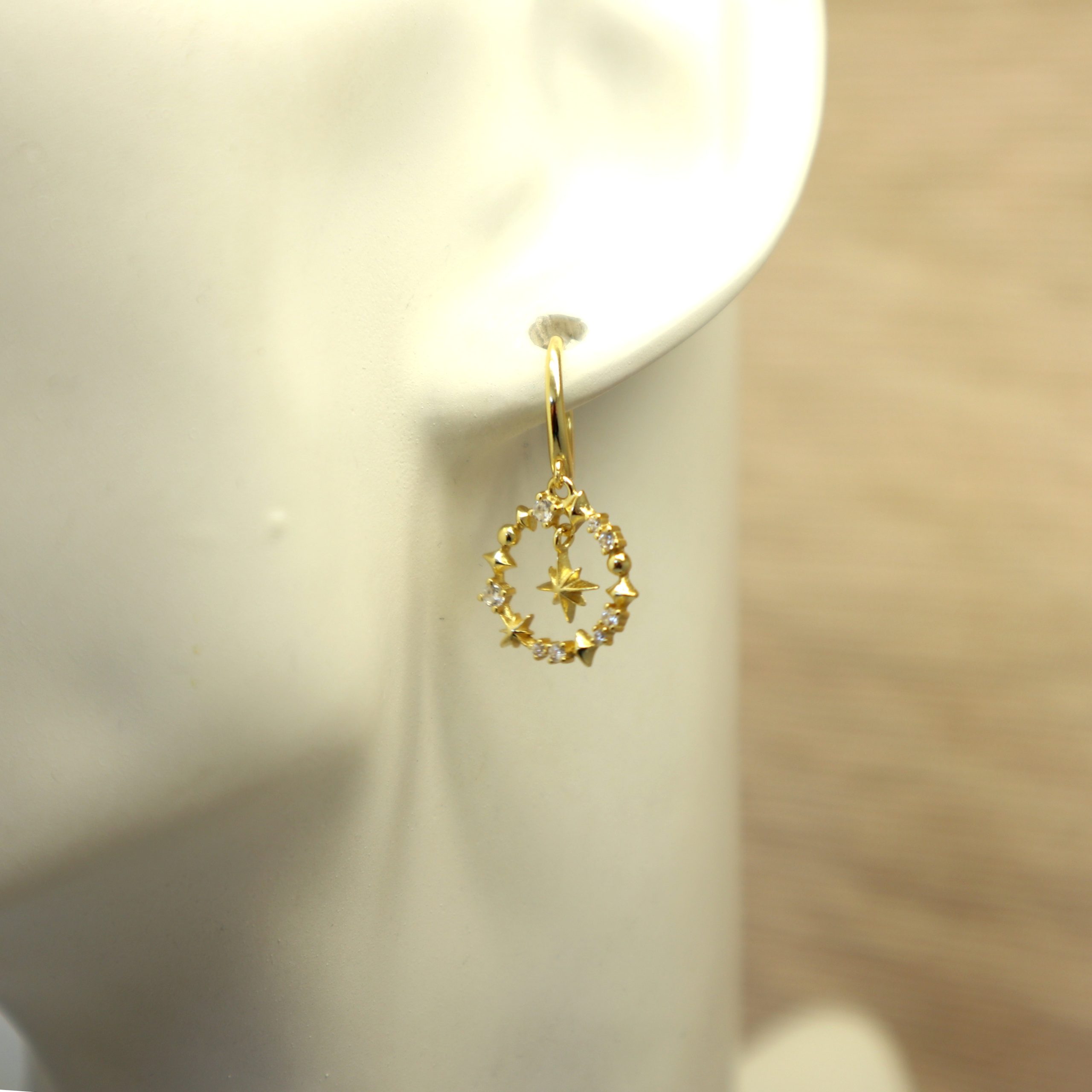 Gold Plated Sterling Silver Circle Earrings with Star