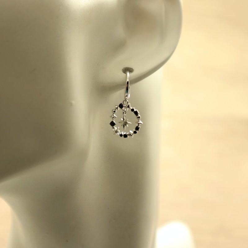 Silver Circle Black Cubic Zirconia Earrings with Star