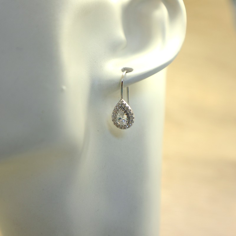 Silver Teardrop Hook Earrings with Cubic Zirconia