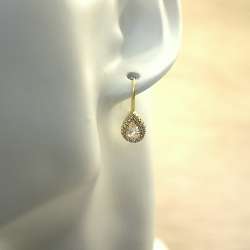 Gold Plated Sterling Silver Teardrop Hook Earrings with Cubic Zirconia
