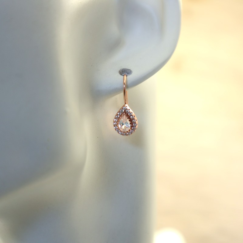 Rose Gold Plated Silver Teardrop Hook Earrings with Cubic Zirconia